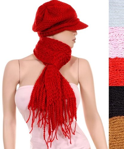Womens / Teen Girls Polyester Knitted Scarf with Matching Hat Set in Solid Colors - New ! Review
