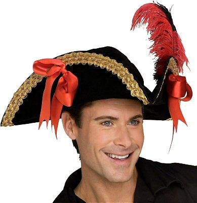 Black velvet pirate hat with gold trim, feather and 2 red bows - STANDARD ONE SIZE Review