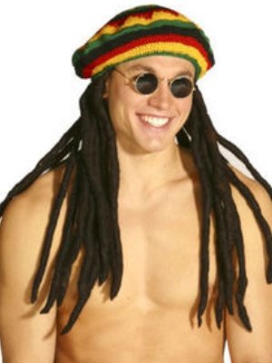 This cool tam complete with long dreadlocks will turn you into an instant Bob Marley wanna be!